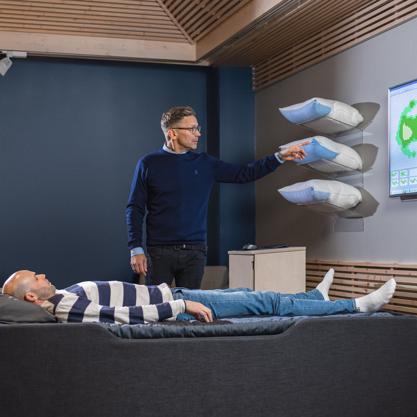 Mittauksesta saamme tärkeää tietoa henkilökohtaisesta nukkumisergonomiastasi, jonka perusteella voimme rakentaa sänkysi patjan jousirivi kerrallaan juuri sinulle.