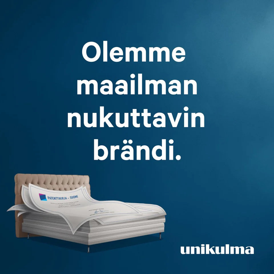 Asiantuntijamme seikkailevat aamusta iltaan unten mailla. He perehtyvät nukkumisen anatomiaan: mistä kaikesta se koostuu ja miten hyvä uni edistää elämänlaatua. Sen johdosta Unikulmalla on yli 40 patenttia, eniten maailmassa tällä alalla.